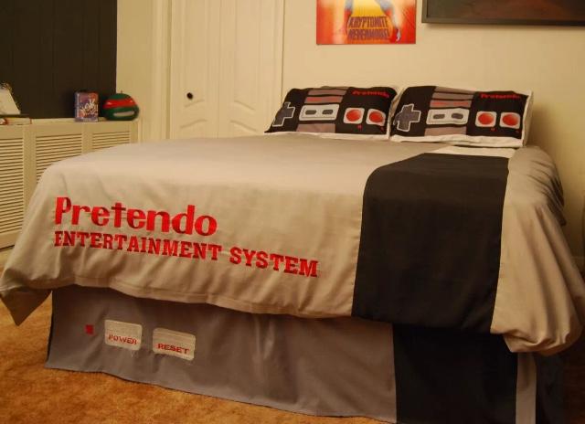 Go to bed in #retrogaming style. No trademark issues with this bed spread ;-) #nintendopic.twitter.com/a9ftcHqEAk