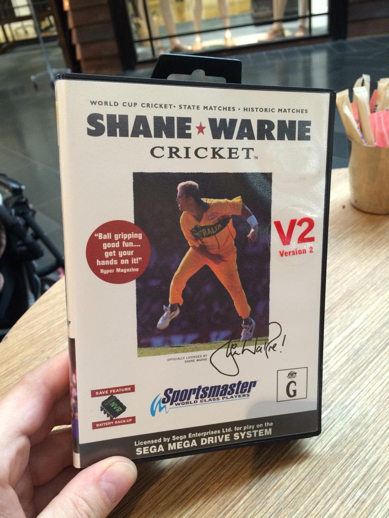 Just got this classic Sega Mega Drive cricket game. Watch out for your royalty cheque @ShaneWarne ;-)pic.twitter.com/PkM5MQnPfO