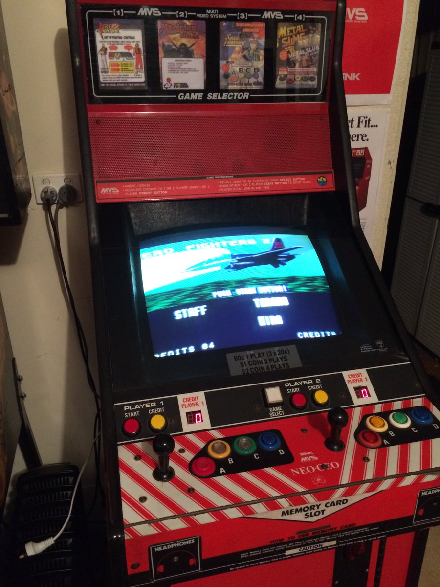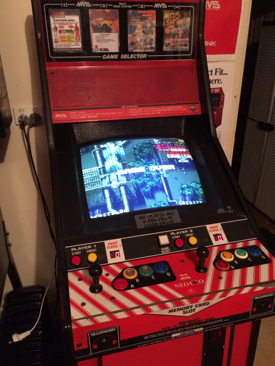 @DrGameAndSci the cab is an original Neo Geo MVS (circa 1991). The game is very similar to Raiden, but with meatier power-ups :)