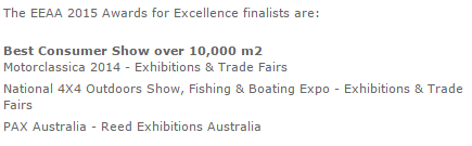 Congratulations to @PAXAus for winning the 2015 EEAA Award for 'Best Australian Event'! Congrats you guys! #PAXAuspic.twitter.com/HaoEKPC2mB