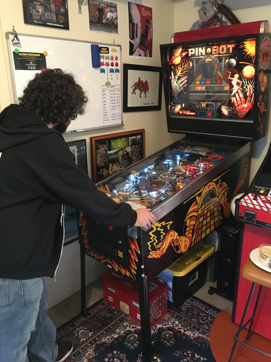 Before you ask Doctor who, It’s our very own @DrCurlytek flippin like mad on Pin•Bot :-) #pinball #retrogamerpic.twitter.com/MyNcy3mhvp