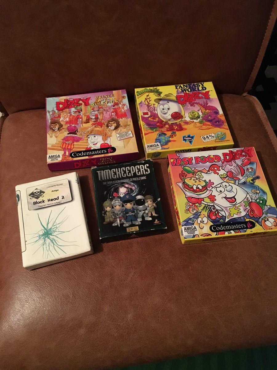 #retrogaming donated treasure: the droolworthy Amiga boxed games & unopened compiler!