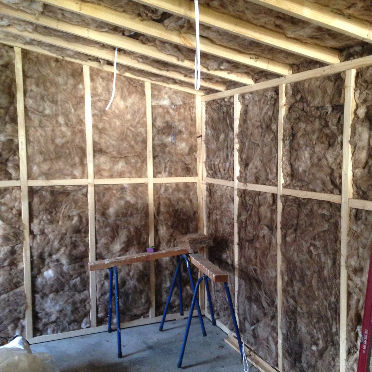 The wooly walls are done. Two free bags from friends, a spare bag I had, and $12 of loose batts did the trick.pic.twitter.com/2ozGfbi4Xu