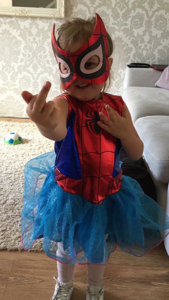 When You Ask Your Daughter How Spider-Man Shoots His Web (via http://cheezburger.com/8813546240/kids-superheroes-spider-man-shooting-web …) #spiderman #cutekid #cosplay pic.twitter.com/866Y5gBZ9K
