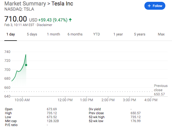 Tesla up another 10%. You can criticize