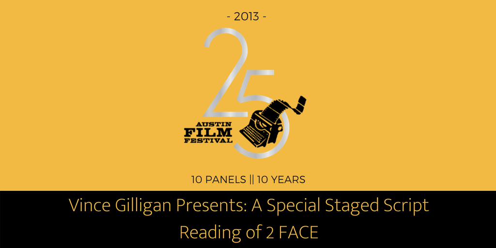 Are you a fan of script readings? We are! During our 20th Anniversary Vince Gilligan presented his script 2 FACE - read more: http://bit.ly/aff10for10 | Can't wait to see what the 25th Anniversary has in store? Get your badge before the price increases! http://bit.ly/attendaff25 pic.twitter.com/N6F6bILEax