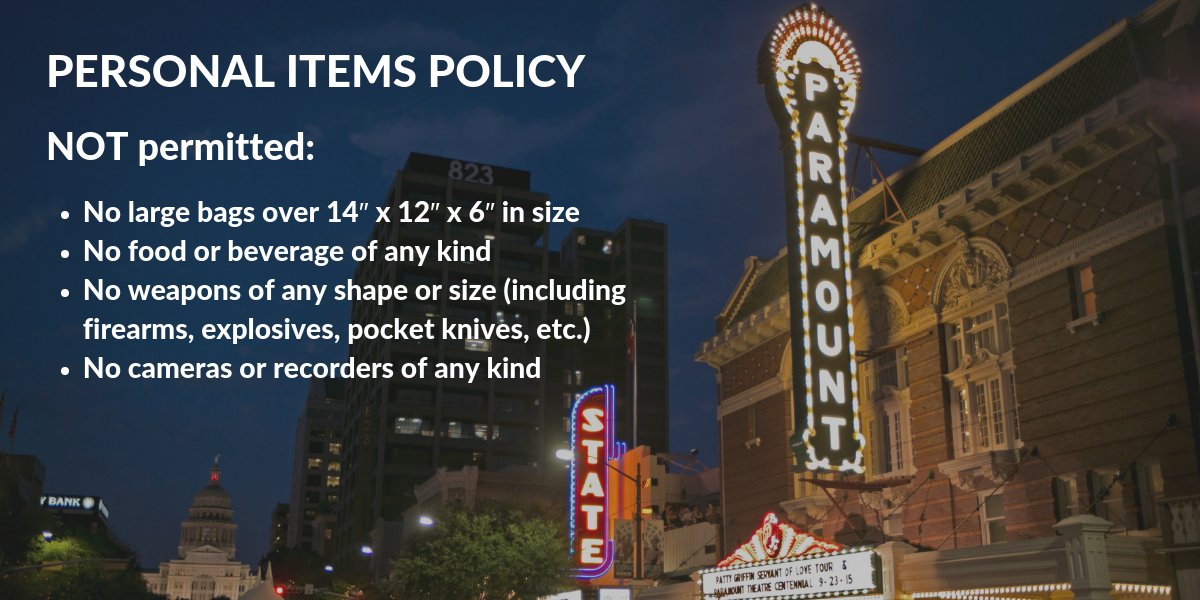 Heads up for anybody planning to attend a screening at the @ParamountAustin or State Theatre: No bags over 14”x12”x6” in size will be allowed. Please plan accordingly. More info: http://ow.ly/nkjO30mnm2K pic.twitter.com/yeqp7FN7a2