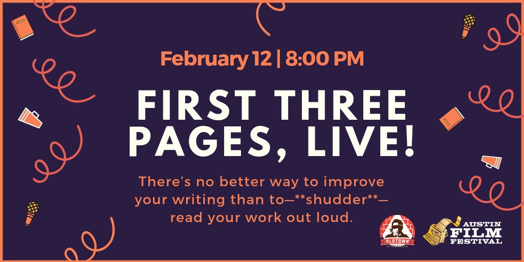 Join AFF for an afternoon of live readings featuring the first three pages of works-in-progress, forgotten screenplays, and a few other surprises. This panel is presented by @ColdTowne Theater. http://bit.ly/FTP19TIX pic.twitter.com/Kx1uwA4wn8