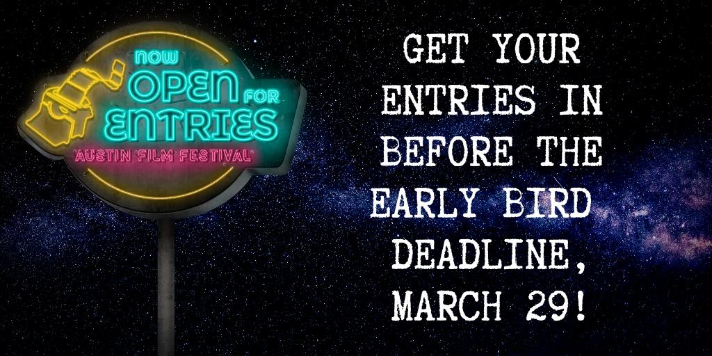 In three days is our early bird deadline for submissions to the 2019 Austin Film Festival! Got a story you need to share with the world? Submit today! http://bit.ly/compopen pic.twitter.com/PTSmPoxS0B