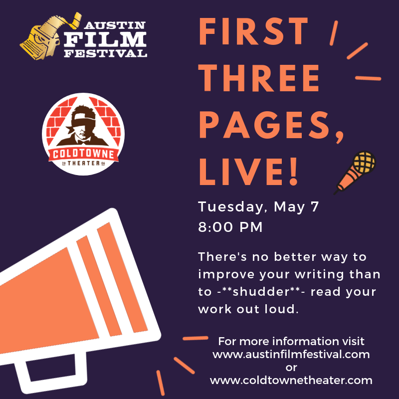 Another reminder for First Three Pages, Live! tomorrow at @ColdTowne !