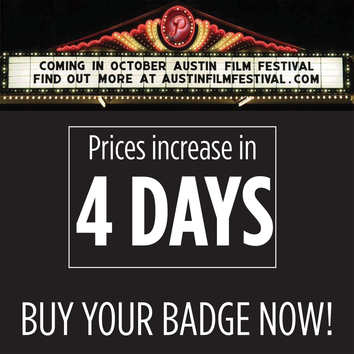 Badge prices increase this Friday! #AFF2017 -- http://bit.ly/affbadges17 pic.twitter.com/my3qpneTMy