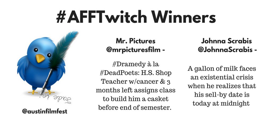 We want to congratulate @mrpicturesfilm & @JohnnaScrabis for sending in such awesome Twitches! Good luck at the #AFF2017 #PitchCompetition!pic.twitter.com/iHWMzKisEs
