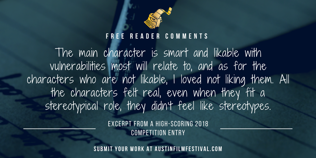All Script competition entrants receive FREE reader comments! http://bit.ly/AFFSubmit pic.twitter.com/giyaKwNgO4