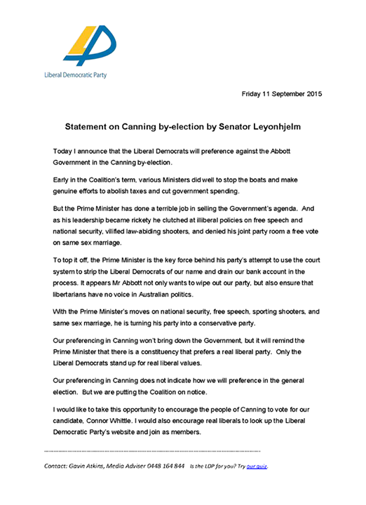 @AustralianLabor@brendens3 Press release from LDP on pref deal with labor at canning by election buddypic.twitter.com/bA4NNBTVp2