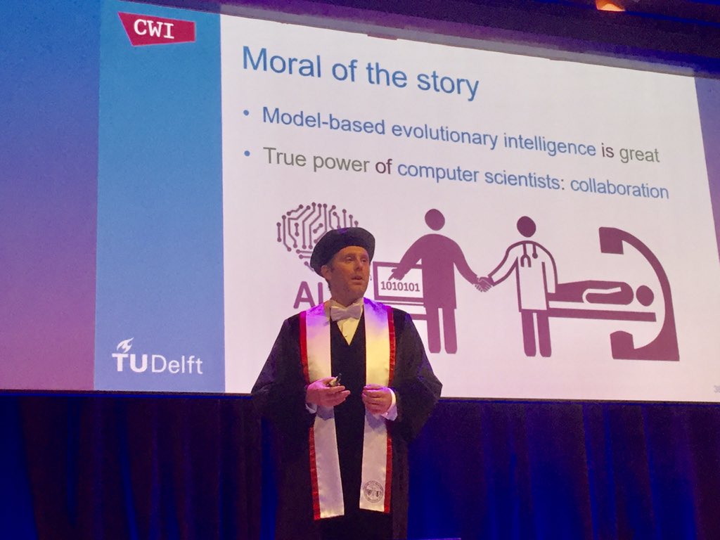 @CWInl), newly appointed at@EEMCS_TUD as part time professor in evolutionary intelligence, mixing model learning and evolutionary algorithms. “True power of computer scientists: collaboration.”pic.twitter.com/urW0VFuyPt