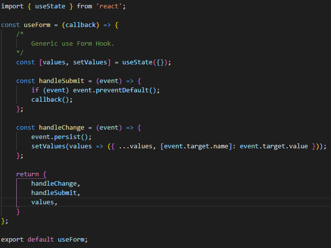 @reactjs. Instead of handling every input with "const [x, setX] = useState('')" you can write these in the custom Hooks for all inputs.