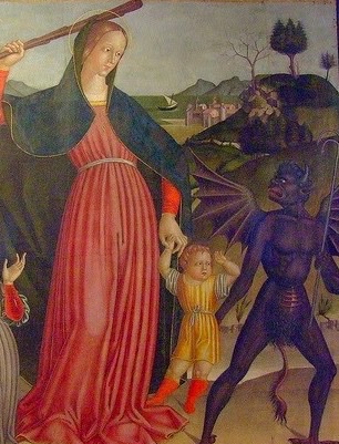 Painting of Our Lady beating back the devil with a stickpic.twitter.com/cjJRtpHSn4