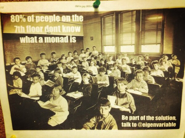 "80% of the people on the 7th floor don't know what a monad is..." /cc @Eigenvariablepic.twitter.com/XdpL8xPmFW