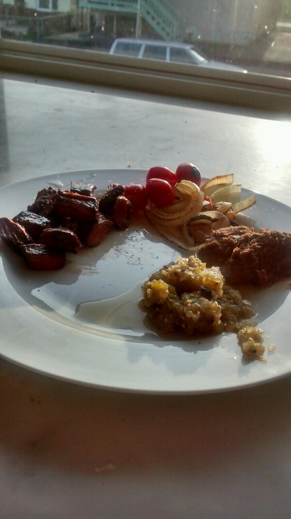 Bachelor dinner done right! Skirt steak, roasted veggies, salsa Verde, beans made with our own lard. #yumpic.twitter.com/abzG7vhEG4