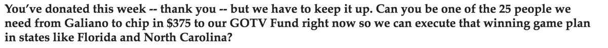 things could be diff now: in 2012, there was a specific $ ask per recipient, and then diff prompts would be tested. Incl geo.