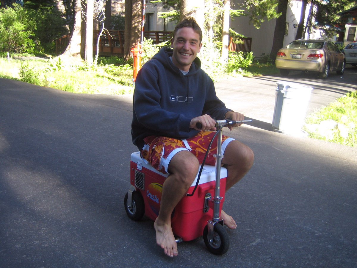 Can I request a single composite picture: in the tux, but with the glasses, sitting on the cooler-scooter-thing, eating the sandwich? kthx
