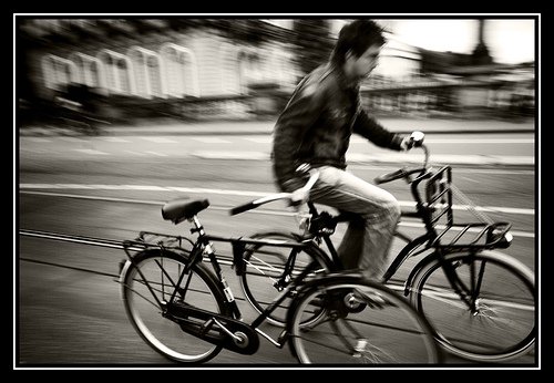 I like that, though maybe you should add that the first bicycle is alternately magnetically attracted to or repulsed by the second.