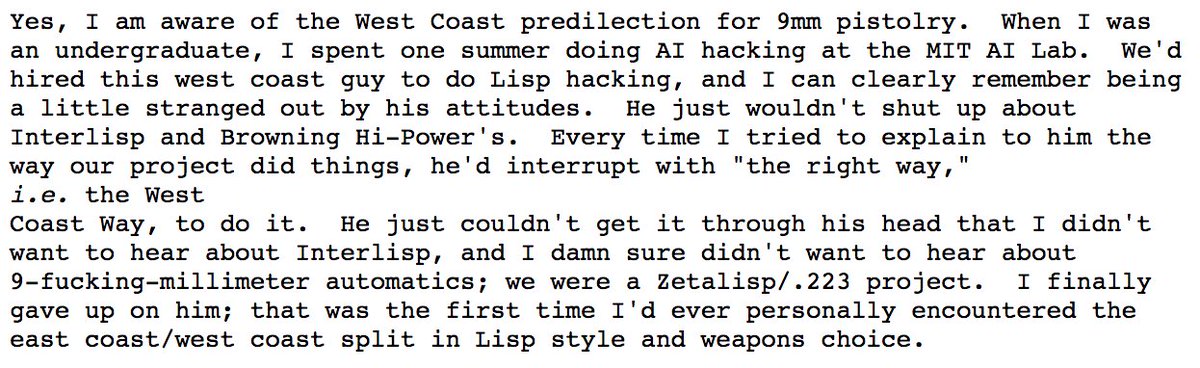 The proposals to arm teachers are utterly bonkers and terrifying. For those who, like me, look for the dark-humour linings, you might appreciate this classic satirical mailing list thread: http://www.ccs.neu.edu/home/shivers/autoweapons.html …