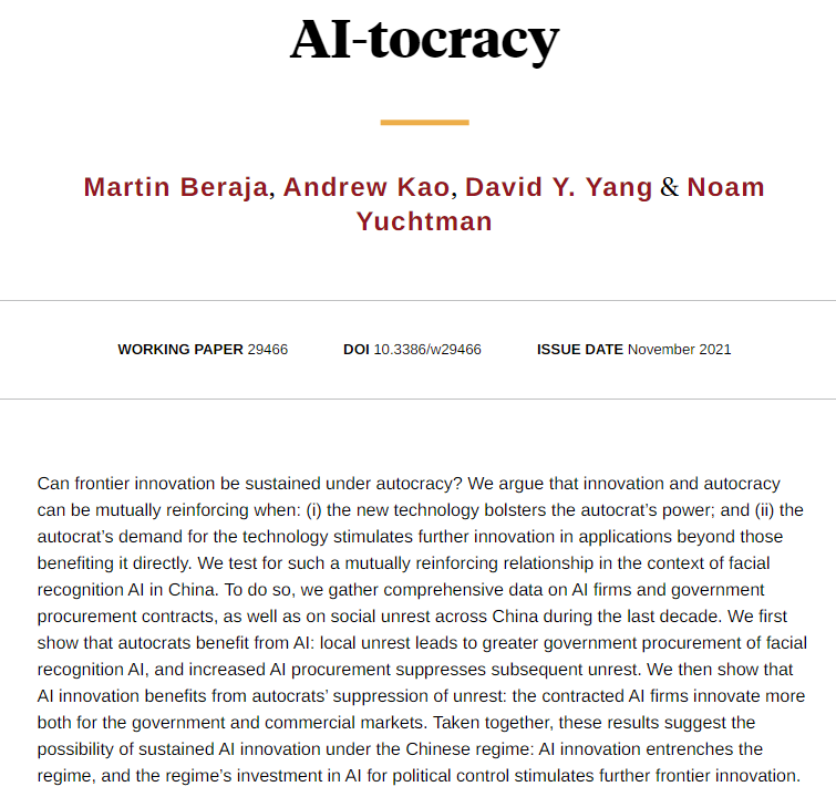 Read on for evidence of such mutually reinforcing relationship in the context of facial recognition AI in China.