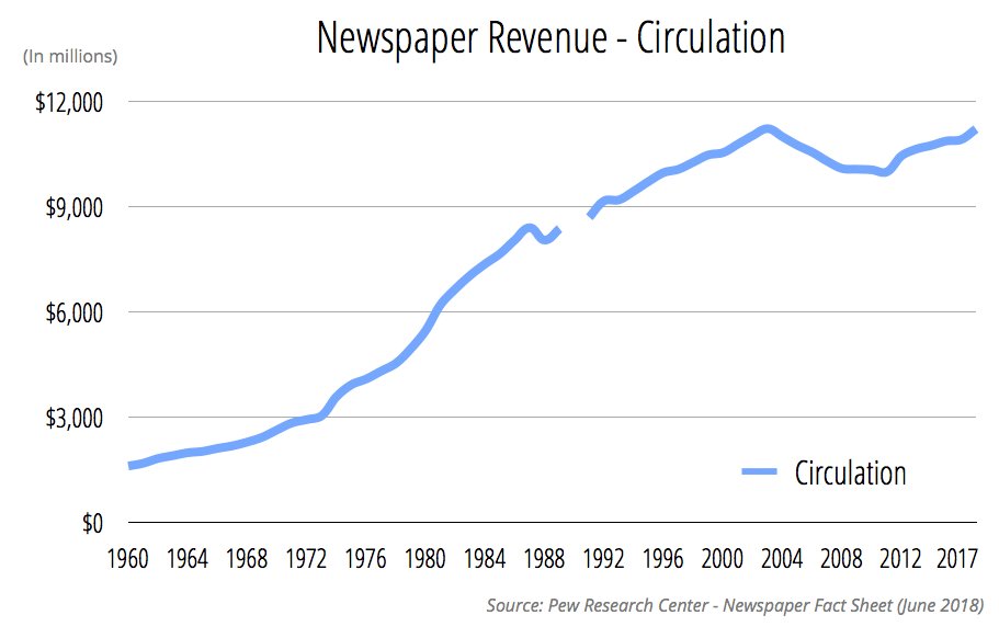 Quality of answers from data is limited to the quality of questions posed by the human. Ex: Ask a simple question to get graph #1, and proclaim: FACEBOOK + GOOGLE KILLED NEWSPAPERS! Ask a smarter question to get graph #2, and suddenly the story changes. https://goo.gl/qC6q41 pic.twitter.com/CoOvMxeIO7