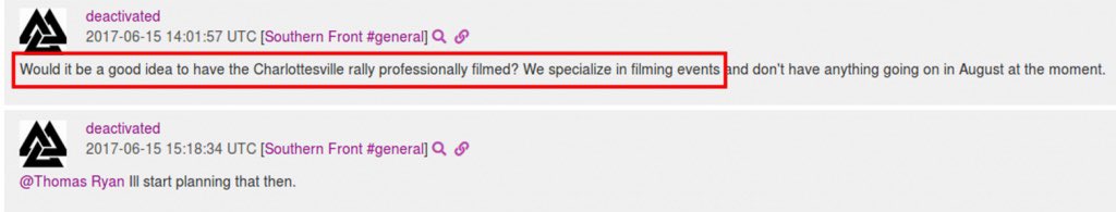 Somerled Macdougall shows up in discord servers for Vanguard America, Anticom, and Identity Evropa/AmIM. Aside from spewing especially gross bigoted bullshit, he notably offers to film the Unite the Right rally with his event cinematography company Nine Worlds Filmspic.twitter.com/aVU6mNSklB