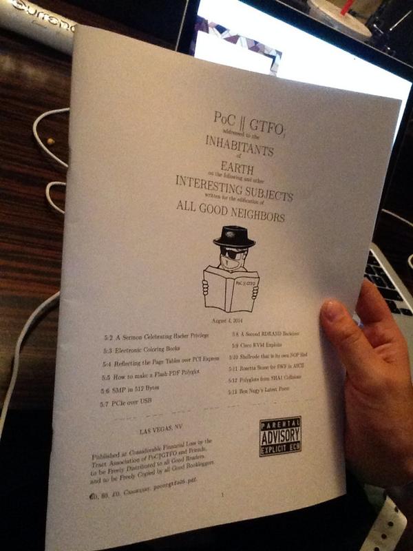 PoC||GTFO hard copy. Now this is some cool shit! #poc||gtfo #haxpic.twitter.com/uxXCMEffIi