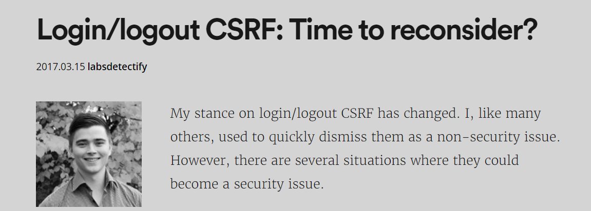 New write-up by security researcher @avlidienbrunn: Login/logout CSRF: Time to reconsider? https://labs.detectify.com/2017/03/15/loginlogout-csrf-time-to-reconsider/ … #infosecpic.twitter.com/6UeKIq8bhk