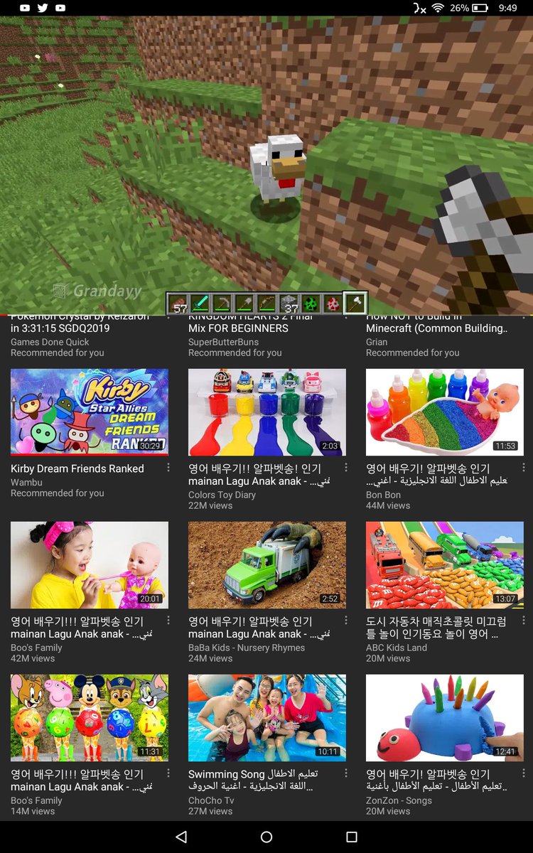 Hey @TeamYouTube, can you explain why I'm getting what I can only assume are Korean kids videos in my recommended? I have never watches anything similar, as shown by the videos properly recommended in the screenshot.pic.twitter.com/42znXvBttP