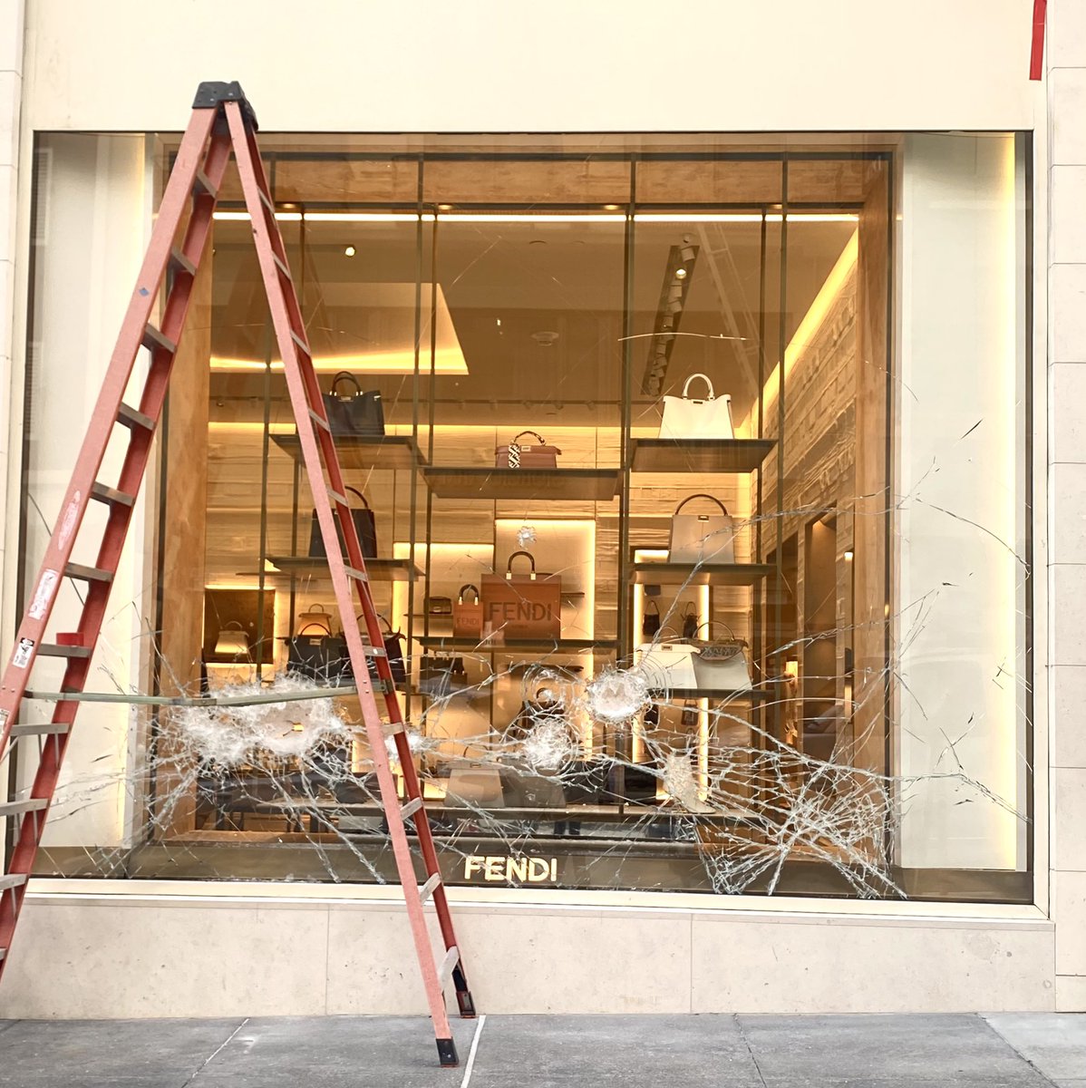 Yves St. Laurent was entered by removing a large gate + broke through a heavy door.Looked impossible to enter but they did. Fendi had windows smashed each cost 50k.Downtown looked like a war zone. @SFPD @safersfnoboudin @TheMarinaTimes @MatthewRhoa @GavinNewsom @sfbos @SF_Chamberpic.twitter.com/iL9eVzOhgT