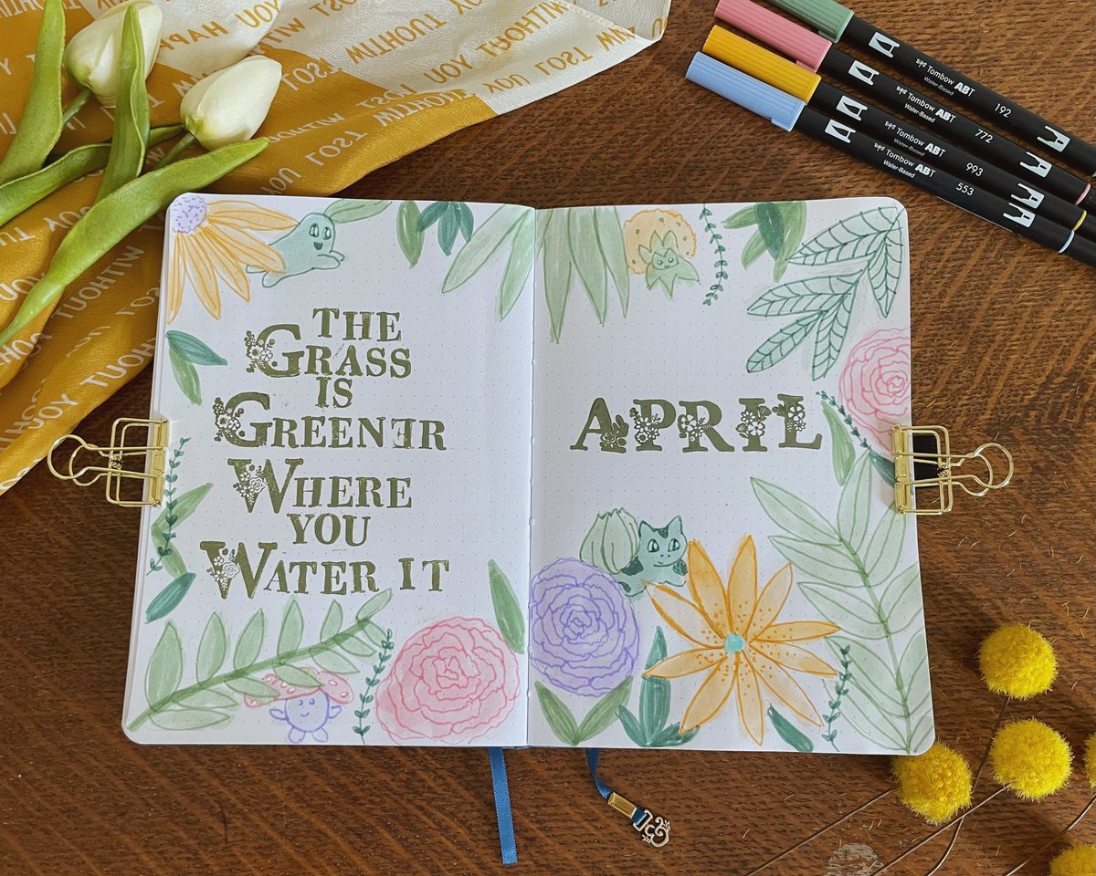 Tried something new for this month’s spread - I used the Tombow Dual Brush markers as watercolor! I think it turned out really cute and I love my little pokemans 🌿pic.twitter.com/eSvFZTVa1T