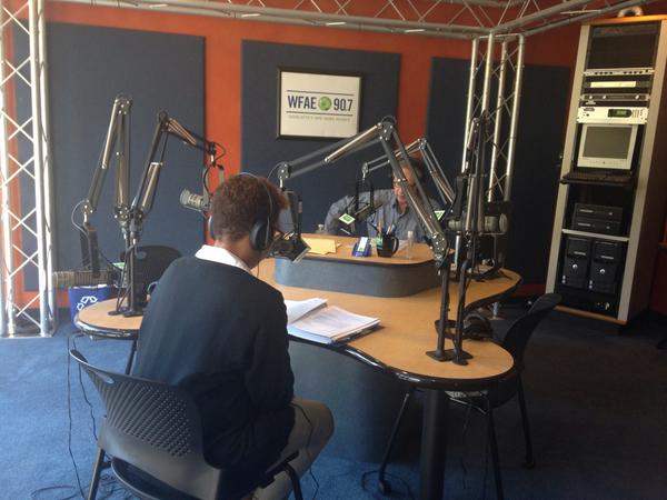 Michel speaking with Charlotte Talks Host Mike Collins @WFAE Spirit Square.pic.twitter.com/U9bXQ3g6wn