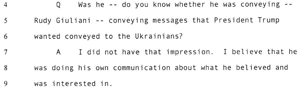Good question from Sen. Reed and others for both sides: "Can you explain who has paid for Rudy Giuliani's legal fees, international travel, and other expenses in his capacity as President Trump's attorney and representative?"