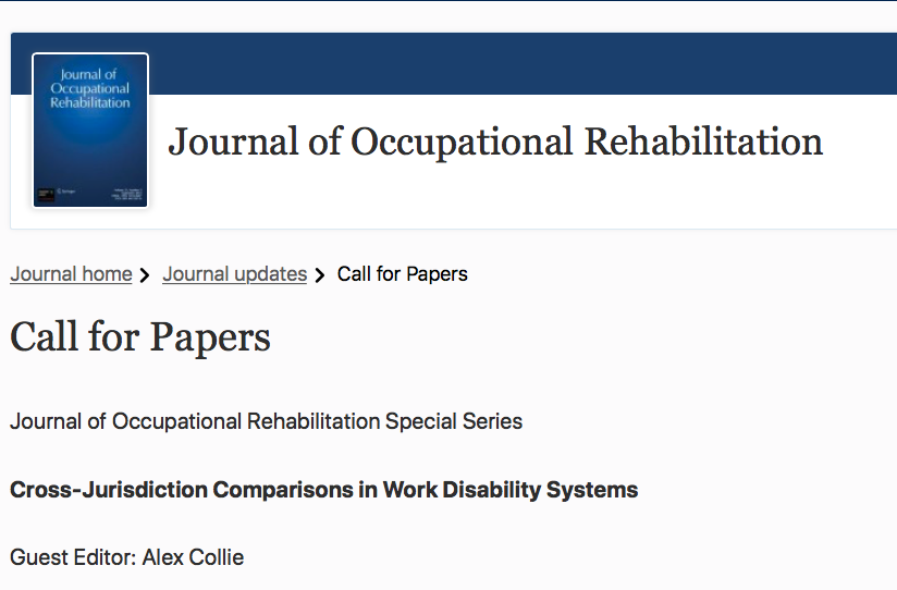 Great opportunity for researchers working on comparative studies to contribute to a special section in the Journal of Occupational Rehabilitation. Keen to receive papers from diverse settings and disciplines. Please get in touch if you'd like to discuss a potential submission.https://twitter.com/DP_Gross/status/1309492390604931077 …