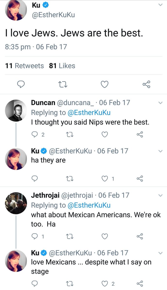 @EstherKuKu Hey Esther, why do you have to degrade AM to attract WM? Do you realize your actions are embarrassing Asian American women, by feeding into anti-Asian racism? Why does your comedy have to be predicated on self-hate?