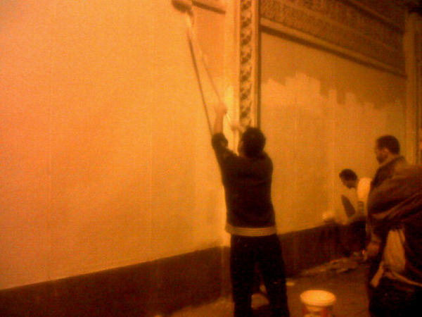 24hrs later: Wednesday night's paint over of graffiti by pro-Morsi supporters on walls of presidential palacepic.twitter.com/jUIZssNH