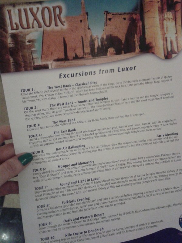 A list of some of the tours offered in #LUXOR. Hot air ballooning was a key activity. Now suspended.pic.twitter.com/qZwBkhyFrc