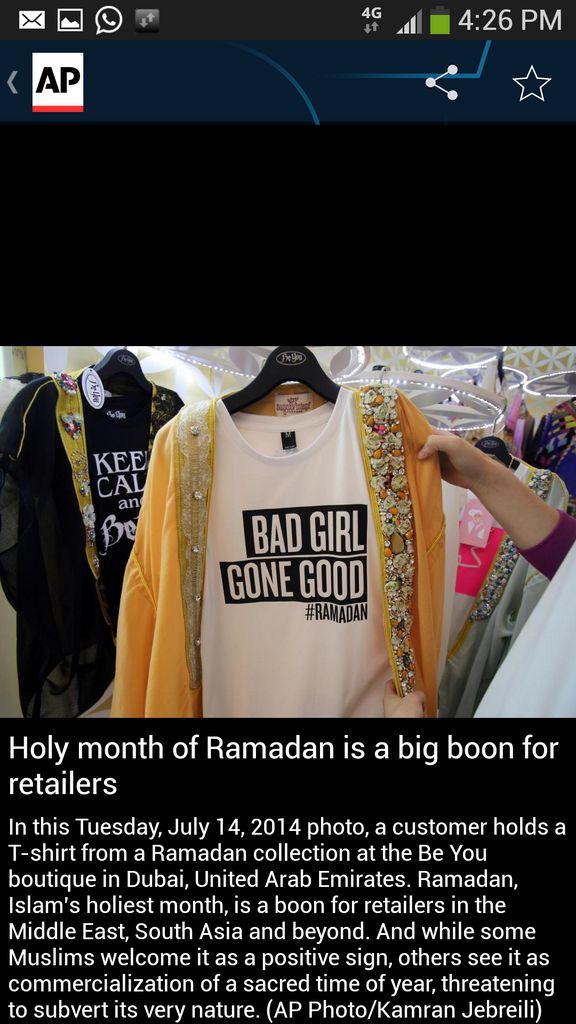 A cheeky #Ramadan shirt in Dubai. AP story tackles question: Is commodification of the holy month good or bad thing?pic.twitter.com/mXtnlEk0pw