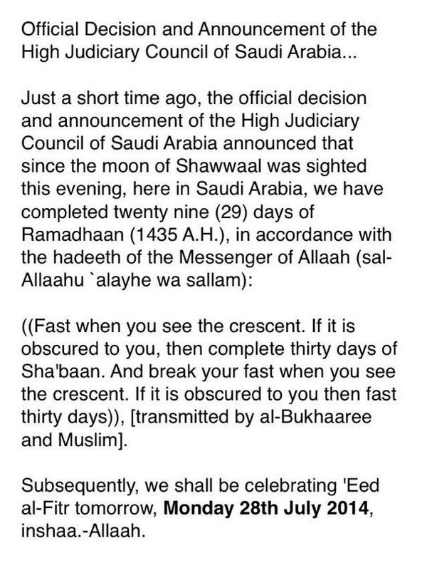 Looks like #UAE might be fasting tomorrow. Waiting to hear about #Saudi. #Jordan #Qatar #Bahrain #Iraq celebrate Eid tomorrow.