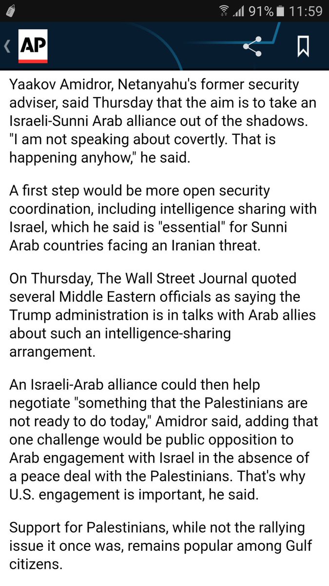A broader Israel-Arab deal _ rare opportunity or diversion? Either way, covert alliances already formed https://apnews.com/da4f52455d7f415286a9f7a7d5a53b75 … (from @AP)pic.twitter.com/PZ3dsYXIwD