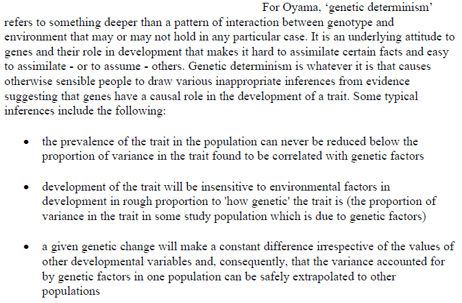 Right. And this kind of "genetic determinism" reveals itself in a more subtle form, something that the philosopher Susan Oyama has noted for decades:https://twitter.com/freerecall/status/1202699731429773312 …
