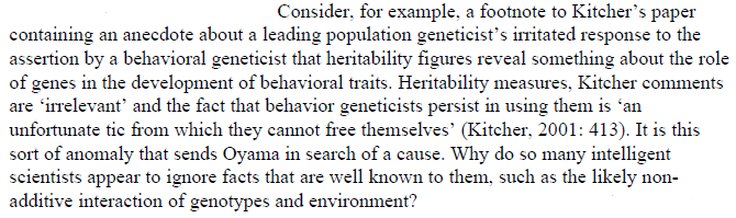 Agreed. They repeatedly fall into this trap of equating genetic phenotypic variation with innate/immutable. Even if they are aware of this issue, they often relying on others to fall for this sleight of hand in their chain of reasoning.