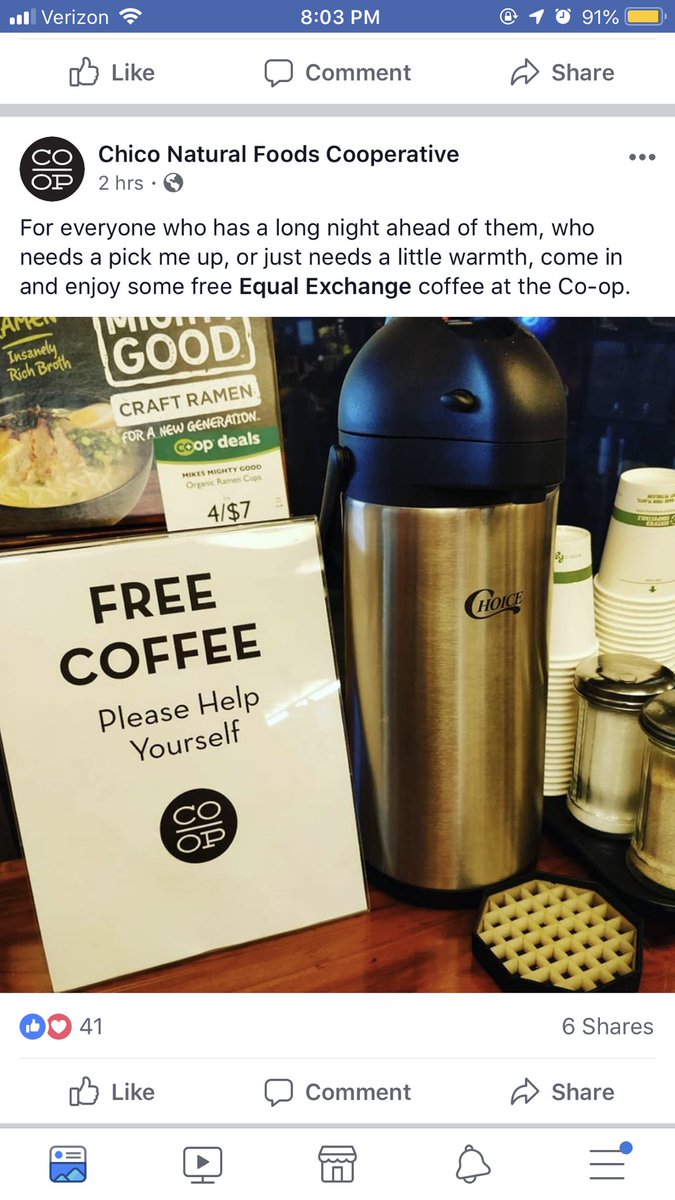 The Chico Co-op is offering soup, ramen and bulk water for free for those displaced by the fire!