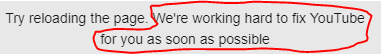 halo @TeamYouTube sejak kemarin suka bermunculan pesan error ini. Ada masalah apakah di pusat? cukup meganggu soalnyapic.twitter.com/67dv5gZxRt
