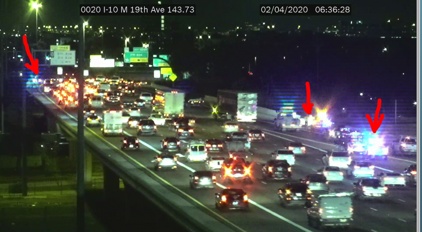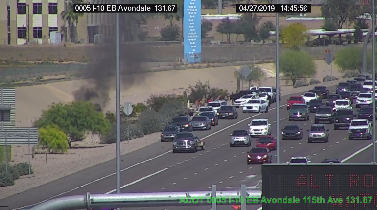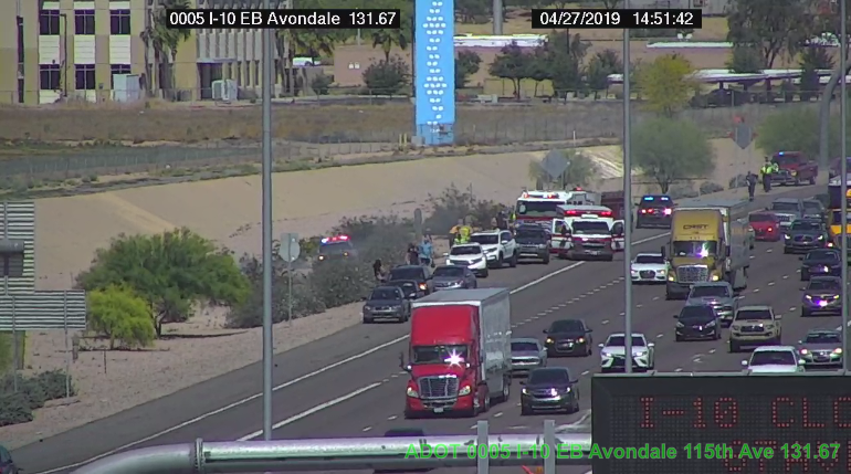 New crash on the I-10 EB @ 19th Ave. Cars in the gore point, off right and off left.