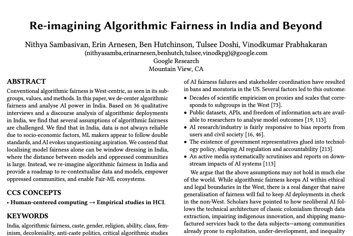 Algorithmic fairness studies tend to focus on Western concerns & histories. How portable are they to the Global South? We look at the case of India. w/ @autopoietic @erinarnesen @tulseedoshi @benhutchinson https://twitter.com/autopoietic/status/1354800510960717837 … pic.twitter.com/H7F8ATsZJb